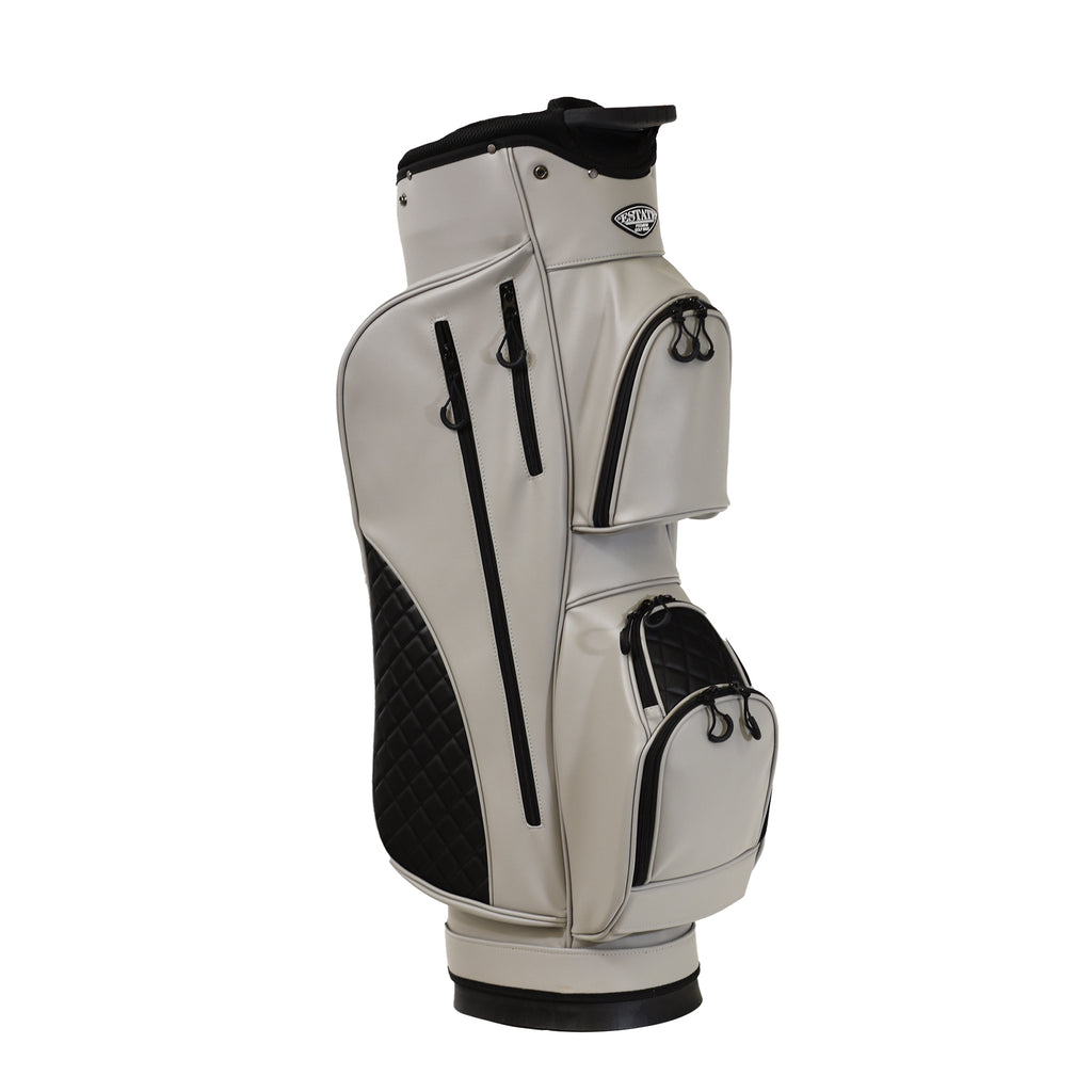 Designed for golfers who appreciate classic style and modern utility, the Estate Series Cart Bag features a 14-way padded top for superior club organization and protection. Equipped with 7 metal-zippered pockets, including a plush-lined valuables pocket, this bag offers secure and accessible storage for all your gear. A padded, comfort-grip handle and adjustable shoulder strap make transport easy, whether you're loading it onto a cart or carrying it from the car. Durable, elegant, and thoughtfully designed—the Estate Series is built for dependable performance and timeless appeal.