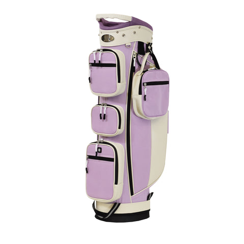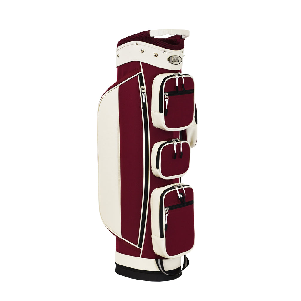 Designed for the discerning golfer who values both style and utility, the Ladies Hampton Series Cart Bag is a sophisticated companion for the course. Featuring a sleek maroon and cream color palette, this premium cart bag is crafted from high-quality materials that offer durability, elegance, and lightweight performance. With thoughtfully organized compartments—including an extra detachable bag for personal items—this bag ensures everything you need is within easy reach.