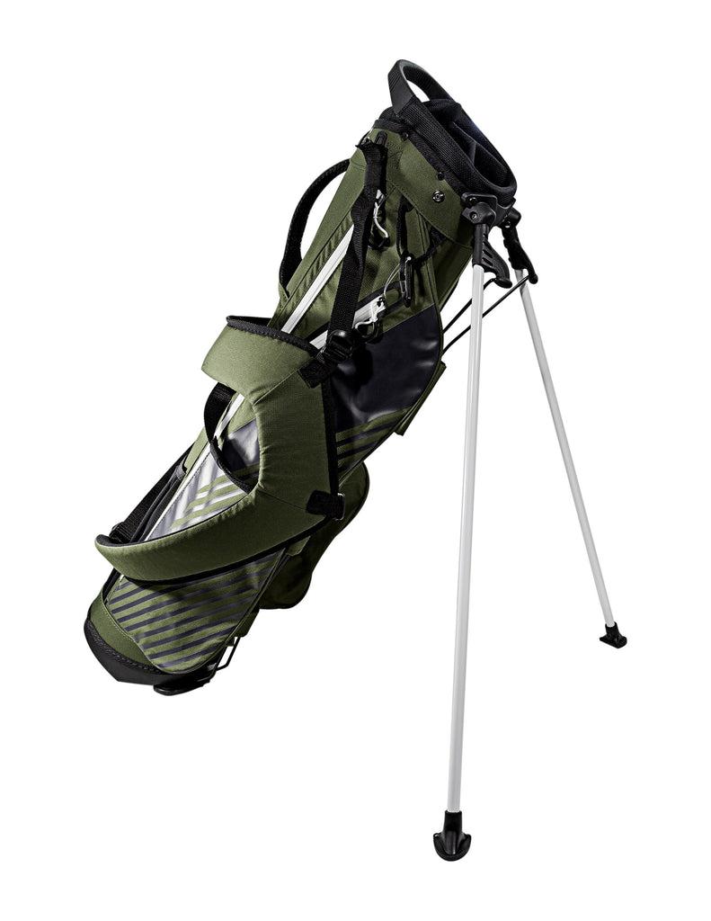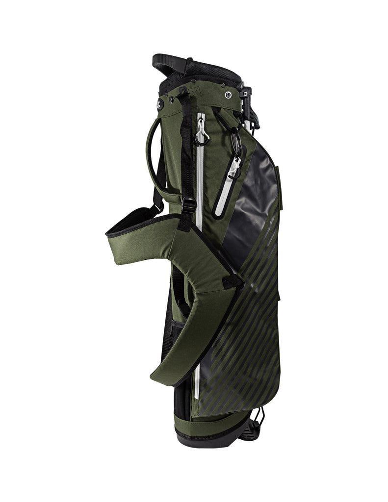 • An adjustable, triple-strap sheath and hip pad, along with an auto-pop stand system makes carrying your clubs and gear comfortable and convenient