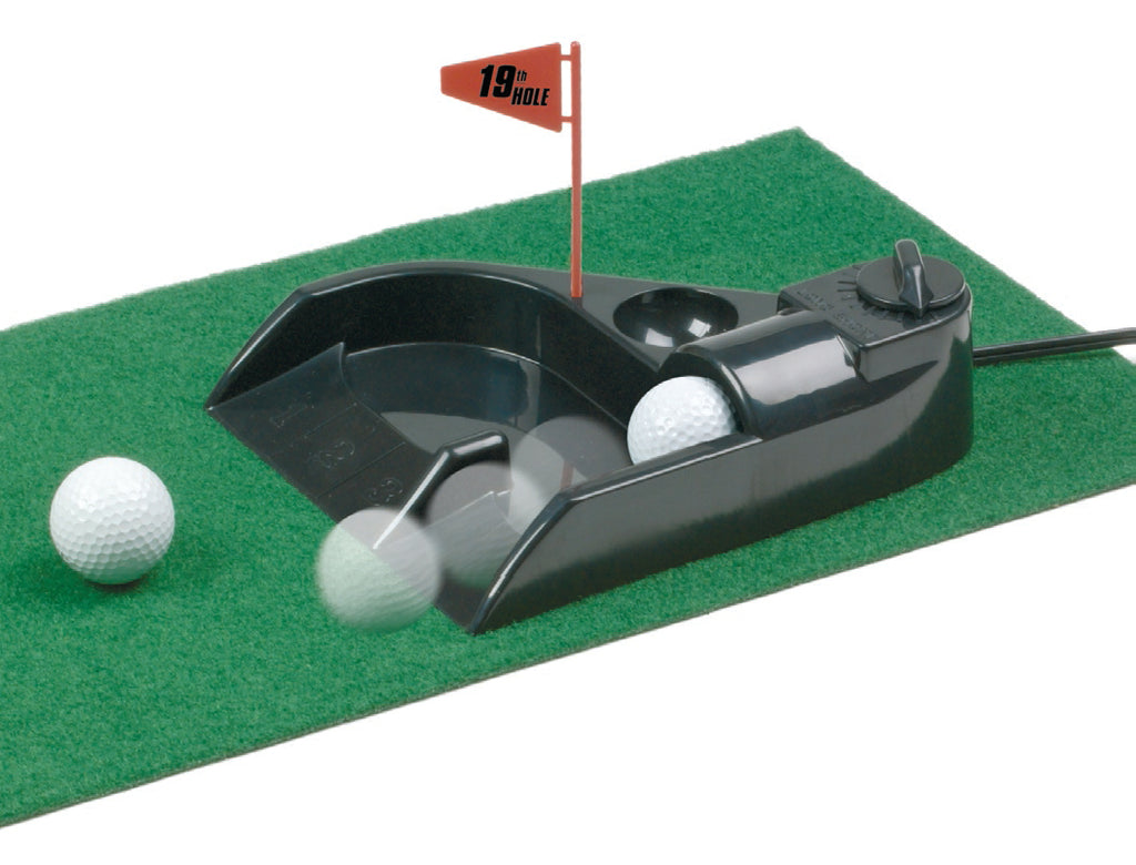 This electric putting partner includes a nine foot putting green that offers accurate green simulation. Features adjustable distance and electric ball return
