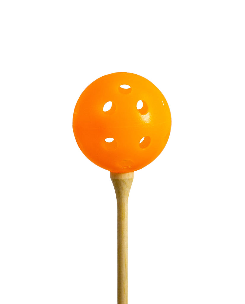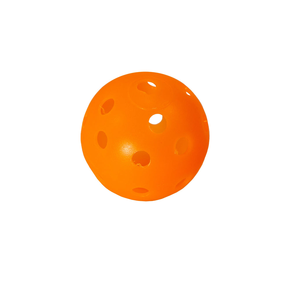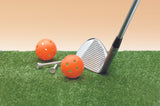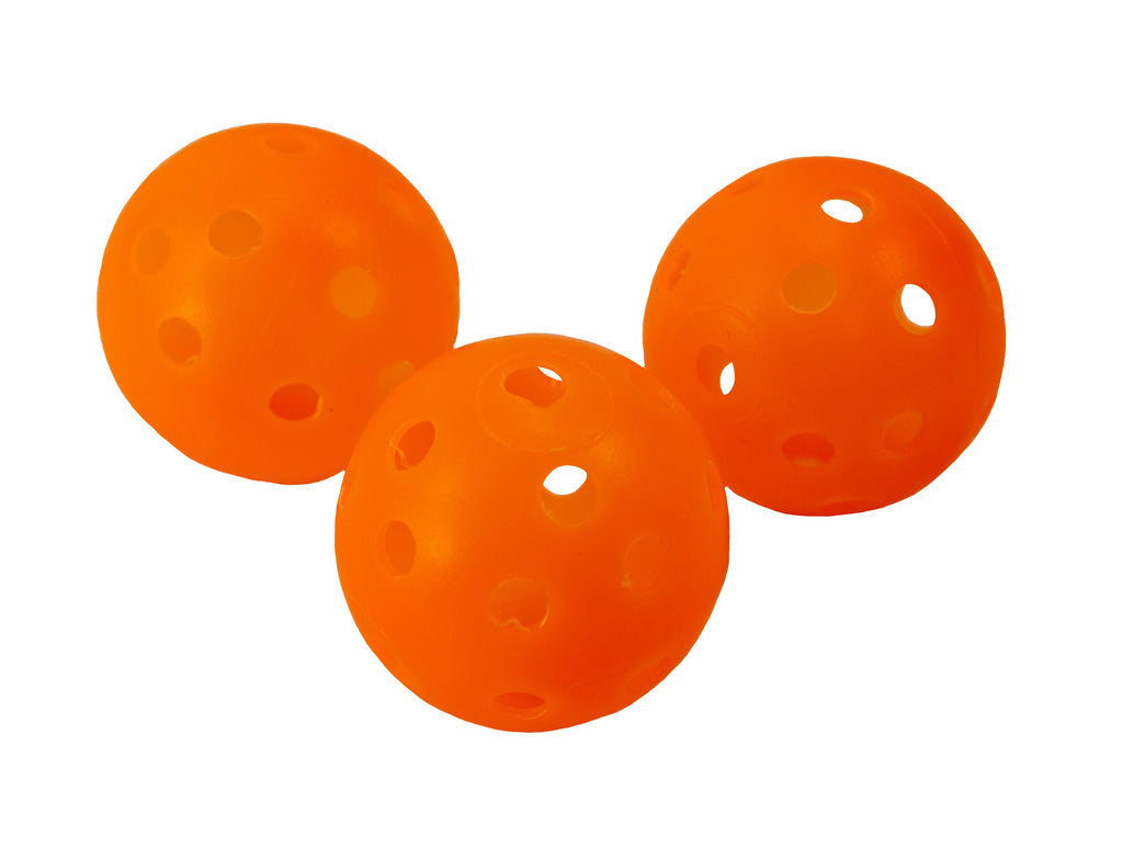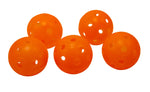 Set of 12 durable plastic practice balls with holes. These practice balls simulate the flight of a real golf ball.