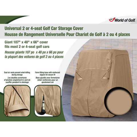 Protect and maintain the condition of your personal golf cart with the Universal 2 or 4-seat Golf Car Storage Cover from JEF World of Golf.