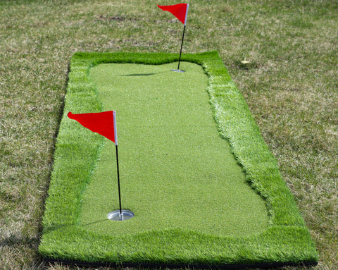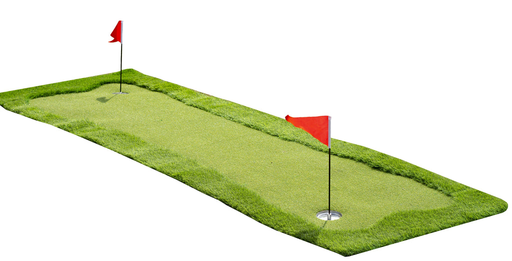 Get in some extra practice between rounds with the JEF World of Golf 3 ft x 10ft Putting Mat. Crafted for indoor and outdoor use, this practice putting mat offers ideal functionality wherever is most convenient for you. The 2 putting holes with flags and border around the outside deliver great performance, so you can spend more time improving and less time chasing balls.