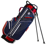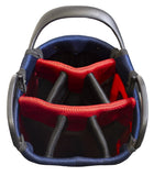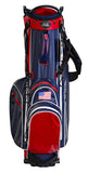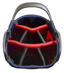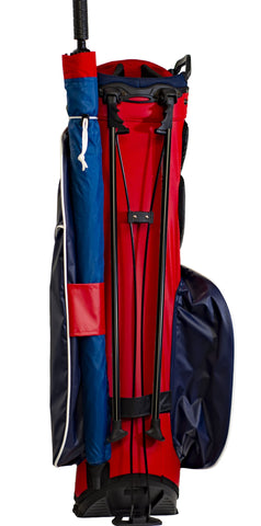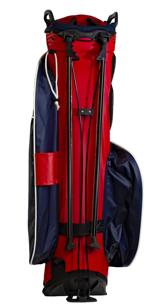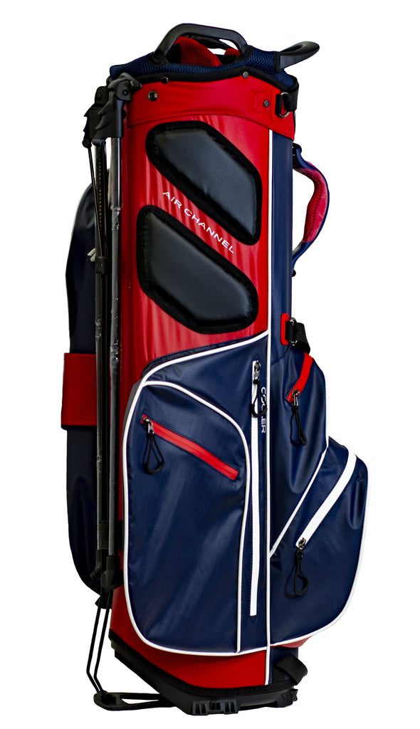 - An adjustable, extra-padded carry sling and hip pad with air channel, along with an auto-pop stand system makes carrying your clubs and gear comfortable and convenient