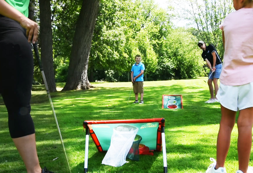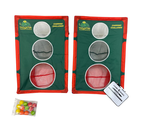 Includes 2 targets, 2 chipping mats, 12 foam balls, a dry erase scorecard, and a handy carrying case.