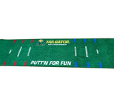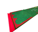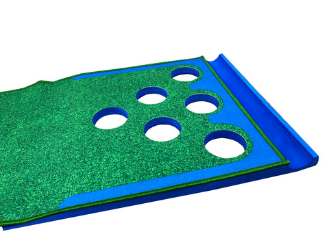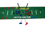Includes 10' long putting mat, 12 hole inserts, 12 golf balls, 2 putters and a handy carrying case